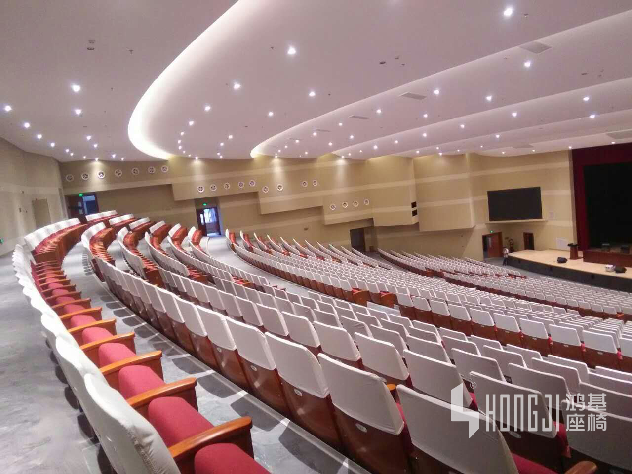 鴻基禮堂椅結(jié)合人體工程學(xué)原理,高檔的柔性面料舒適透氣,精致大方;