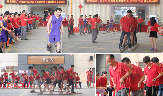 2014年9月30日,鴻基座椅第七屆運動會在鴻基總部公司大院正式拉開帷幕,在開幕當天,全體同事熱情高漲,士氣高昂。比賽共組成8個代表隊。在比賽過程中,全體同事踴躍參加,積極報名,團結(jié)互助。在開幕當天舉行的比賽有拔河、水到渠成、鼓舞飛楊、男女子50米短跑、摸石頭過河接力、兩人三足跳、同心協(xié)力、筷子夾乒乓球。