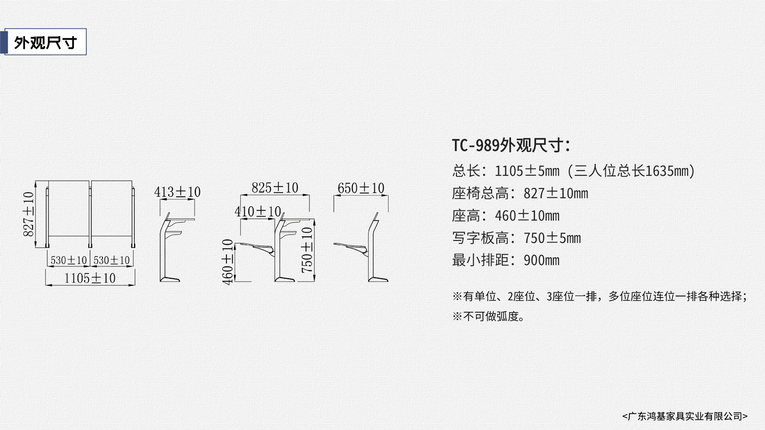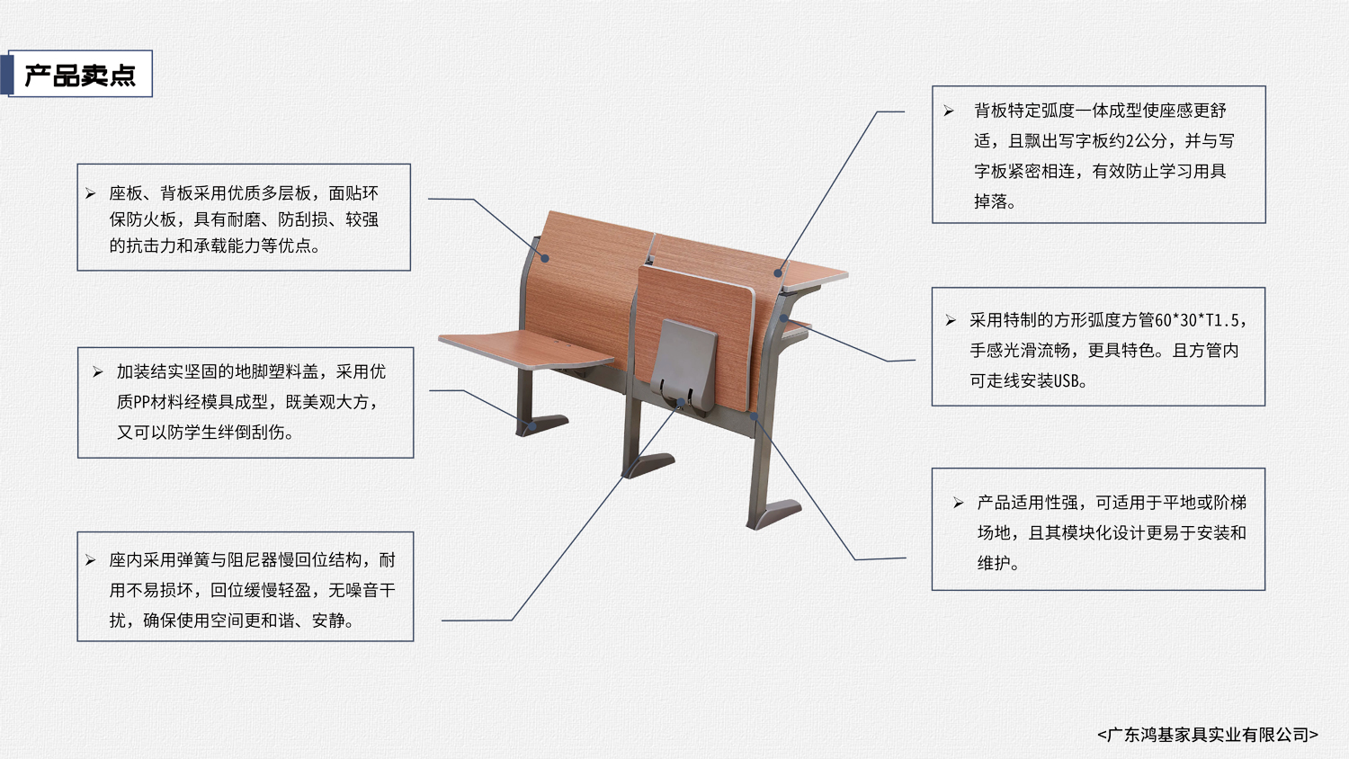 該課桌椅的設(shè)計(jì),已獲國家外觀設(shè)計(jì)專利;此課桌椅的設(shè)計(jì)采用筆直的線條,與座板和寫字板的形成一致;清新亮麗的顏色裝飾課桌椅,讓課堂氛圍變得輕松活躍,筆直井井有序給人整齊有序的學(xué)習(xí)環(huán)境;舒適又堅(jiān)實(shí)的感覺,使整個(gè)設(shè)計(jì)符合人體工程學(xué)原理。座阻尼慢回位功能,使學(xué)習(xí)環(huán)境更寧靜??蔀閷W(xué)校、報(bào)告廳等最佳首選之一。 |